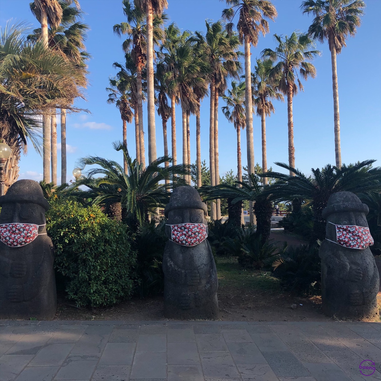 주상절리 산책로에는 마스크를 쓰고 관광객을 반겨주는 하르방도 있는데요.